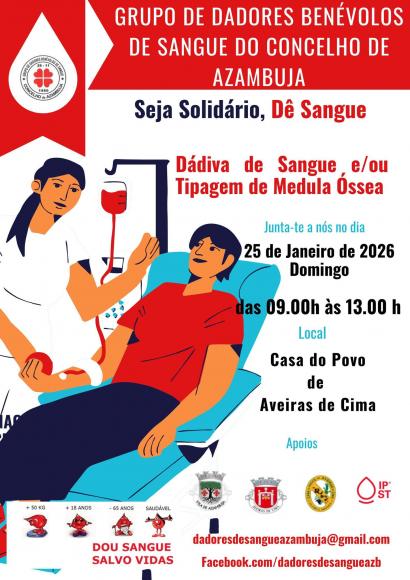 25-JAN-2026Dádiva de Sangue e/ou Tipagem de Medula Óssea 25 de janeiro | das 09h00 às 13h00 Casa do Povo de Aveiras de Cima