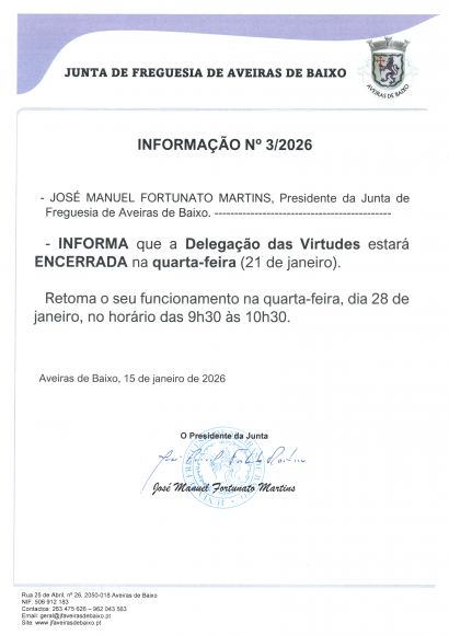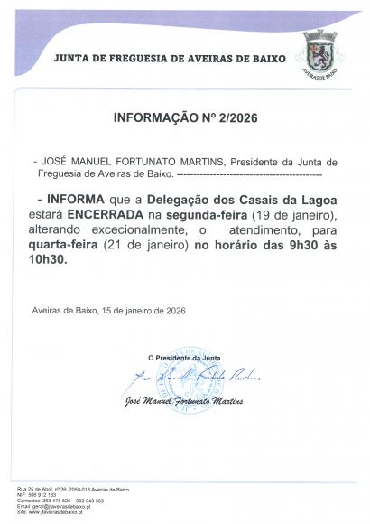 © 2026 Junta de Freguesia de Aveiras de Baixo. Todos os direitos reservados | Termos e Condições | * Chamada para a rede/móvel fixa nacional