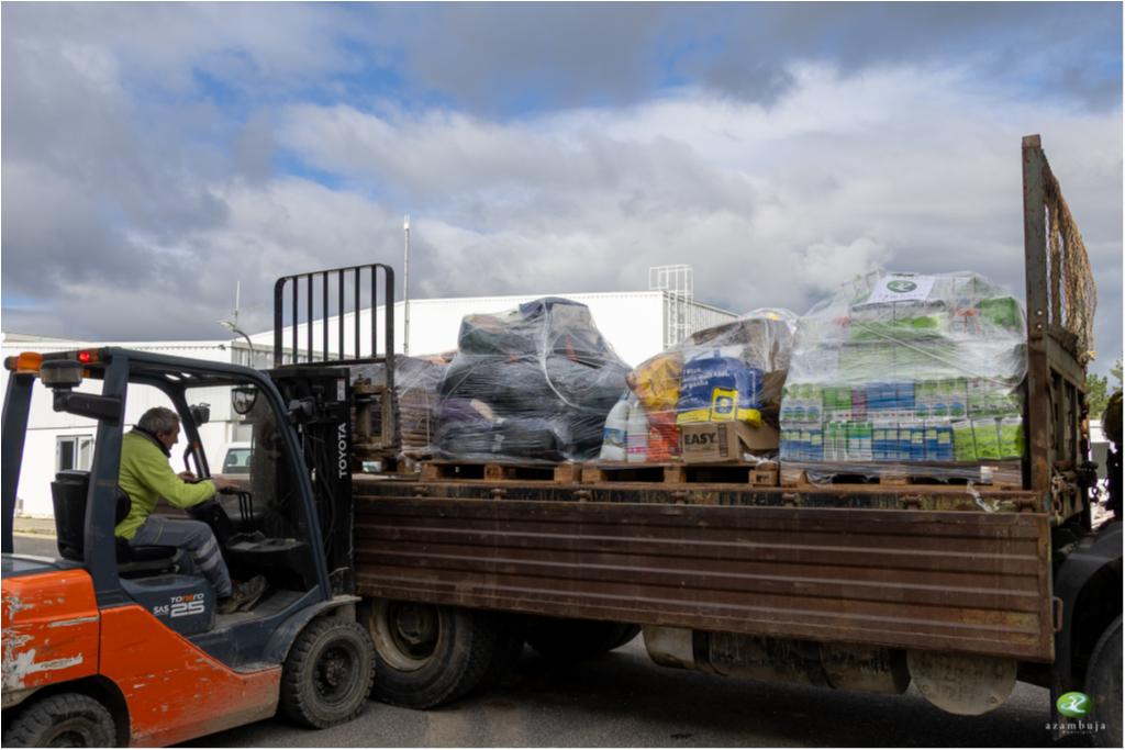 Assim, fruto da parceria da Câmara Municipal de Azambuja com as Freguesias de Alcoentre, Aveiras de Cima, Aveiras de Baixo, Vila Nova da Rainha, Vale do Paraíso e União de Freguesias de Manique do Intendente, Vila Nova de S. Pedro e Maçussa, a que se associaram a Delegação de Aveiras de Cima da Cruz Vermelha Portuguesa e a Associação Humanitária dos Bombeiros Voluntários de Alcoentre, o município já enviou um camião carregado com telhas, lonas, bens alimentares e outros bens de primeira necessidade com destino ao Concelho de Leiria.