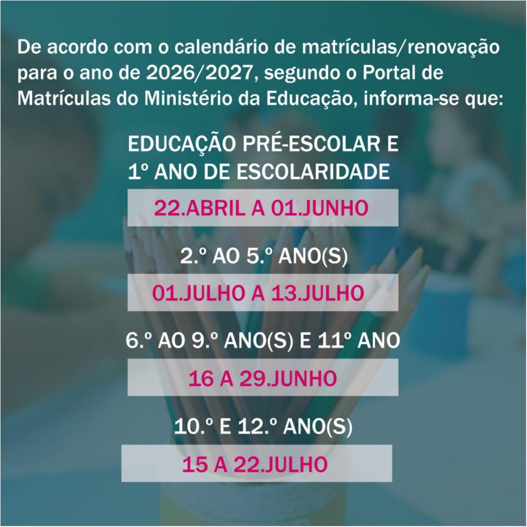 Matrículas do ano letivo 2026/2027